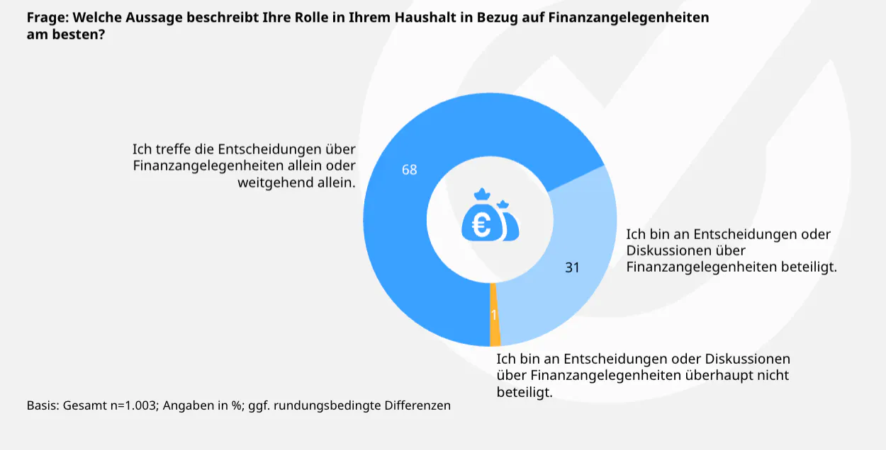 Nahezu alle übernehmen im Haushalt finanzielle Entscheidungen; rund zwei Drittel fungieren dabei als alleinverantwortliche Entscheidungsträger.