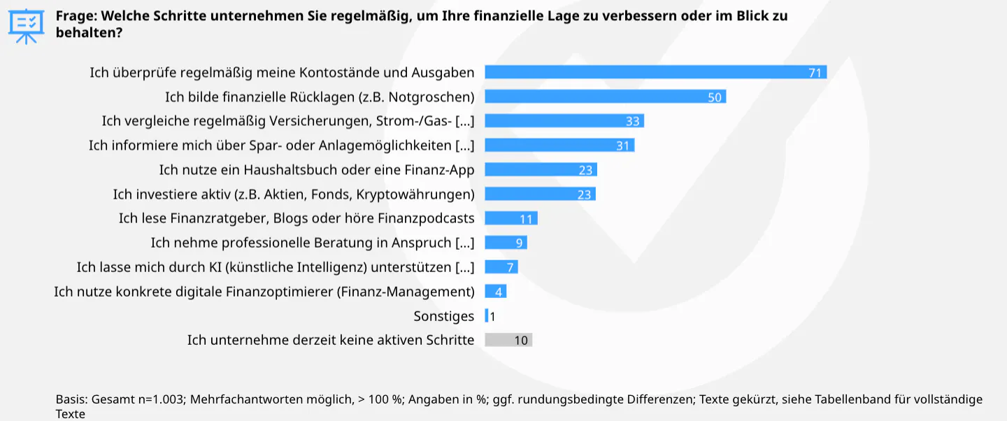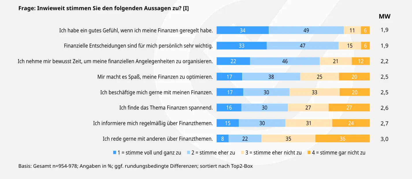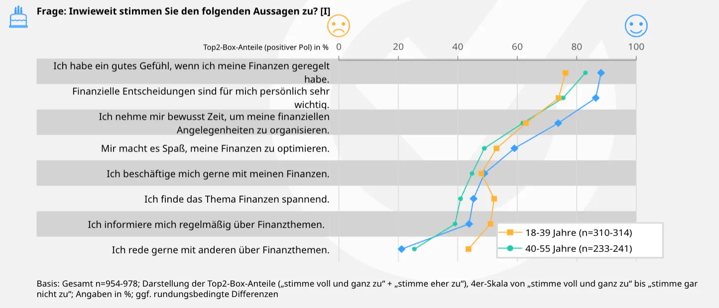 Im Folgenden wird untersucht, wie die Befragten zu finanziellen Themen stehen und welche Einstellungen sie in Bezug auf Geld, Ausgaben und Vorsorge haben.