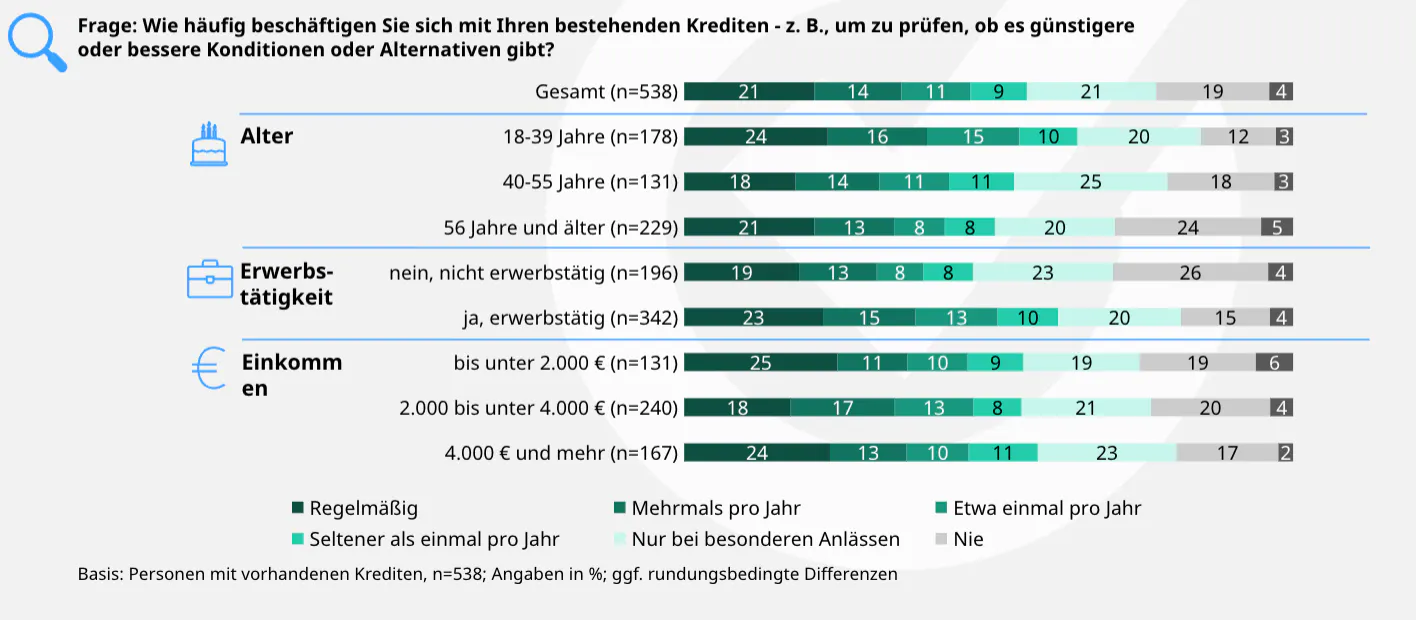 Jeder Fünfte überprüft seine Kredite regelmäßig auf bessere Konditionen.