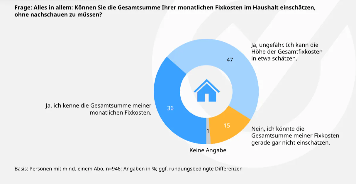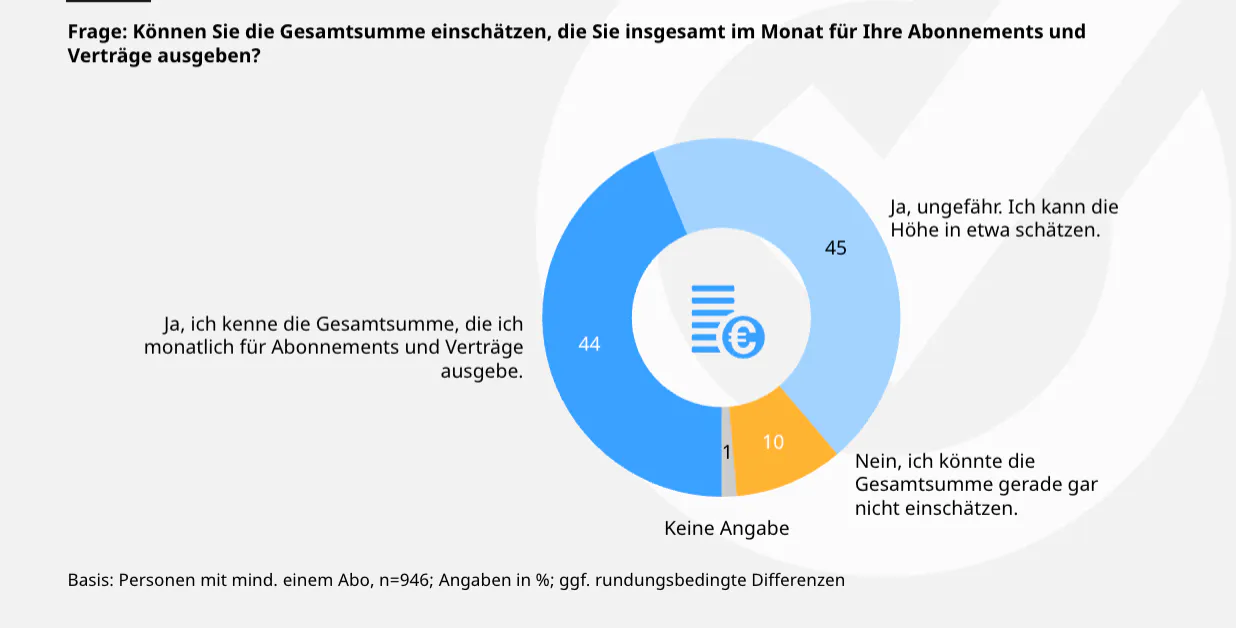Die überwiegende Mehrheit (89 %) behält einen (ungefähren) Überblick über ihre monatlichen Ausgaben für Abos und Verträge.